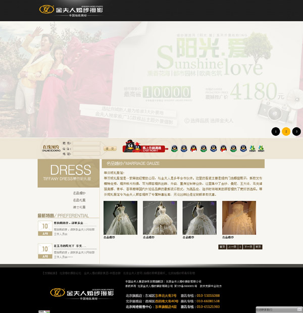 2006年北京金夫人婚紗照相有限公司VIP東單旗艦總店璀璨啟幕。以其3000平米的服務(wù)范疇,全數(shù)碼化作業(yè)流程 五星級服務(wù)尺度 堪稱業(yè)界代表作。