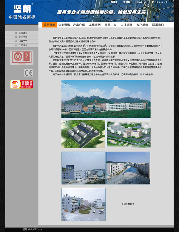 堅朗生產(chǎn)基地占地面積超過25萬M2,廠房面積超過20萬M2。公司員工總數(shù)超過5000人,技能管理職員數(shù)目超過500人。公司產(chǎn)物遠銷100多個國度和地域,在國表里設(shè)有多個販賣服務機構(gòu)。
