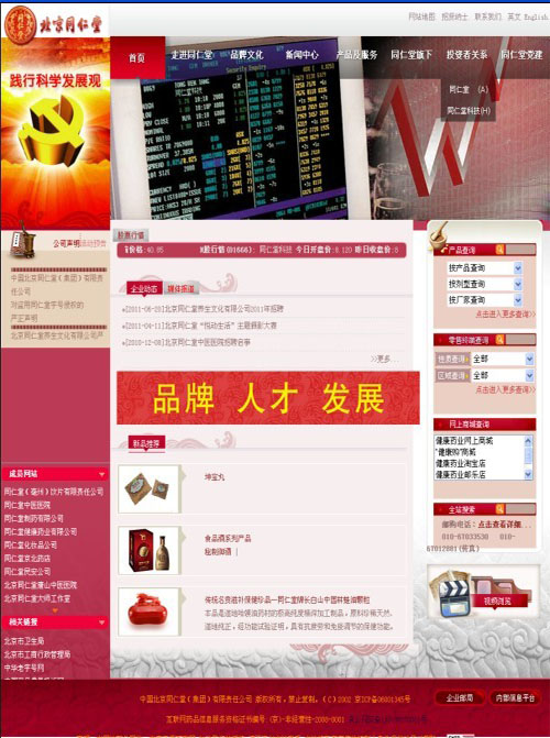 北京同仁堂是中藥行業(yè)著名的老字號,創(chuàng)建于清康熙八年(1669年),自雍正元年(1723年)正式供奉清皇宮御藥房用藥,歷經(jīng)八代皇帝,長達188年。歷代同仁堂人恪守“炮制雖繁必不敢省人工 品味雖貴必不敢減物力”的傳統(tǒng)古訓,樹立“修合無人見 存心有天知”的自律意識,確保了同仁堂金字招牌的長盛不衰。其產(chǎn)品以“配方獨特、選料上乘、工藝精湛、療效顯著”而享譽海內(nèi)外,產(chǎn)品行銷40多個國家和地區(qū)。