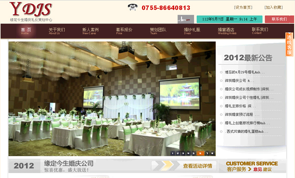 深圳市緣定今生婚慶禮儀策劃有限公司是一家具有時尚色彩的專業(yè)婚禮統(tǒng)籌機構(gòu)。擁有雄厚的婚禮企劃能力、優(yōu)良的服務(wù)體系、資深的策劃專業(yè)人士和獨特創(chuàng)新的婚禮創(chuàng)意制作。形成了自己獨特的策劃風(fēng)格,具有承辦各類中、西式和個性化的流行時尚婚禮的豐富經(jīng)驗,可以向新人提供全方位、個性化的專業(yè)服務(wù)。及先進的管理模式使我們在同行業(yè)的競爭中脫穎而出,獨樹一幟。
