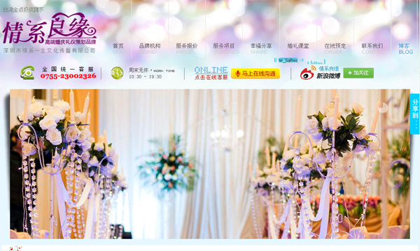 情系良緣前身為帝爾婚禮策劃中心成立于2009年5月,多年來帝爾人不斷摸索與健全服務體系,堅持創(chuàng)意領先的中心思想,保證客戶婚禮的創(chuàng)造性與完整性,2011年在婚慶行業(yè)努力3年的帝爾婚慶公司漸露頭角,2012年臺灣金點投資注資百萬,創(chuàng)意打造“情系良緣”品牌,情系良緣婚慶品牌隸屬于深圳市情系一生文化傳播有限公司,意在打造深圳婚慶第一品牌, 引申中外文化精髓,奉獻于中國婚慶品牌建立和婚慶品牌梳導。