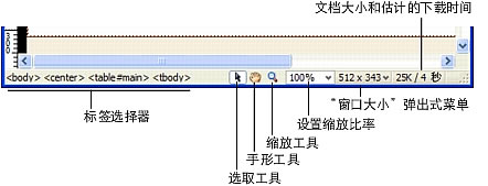 標簽選擇器顯示環(huán)繞當前選定內(nèi)容的標簽的層次結(jié)構(gòu)。單擊該層次結(jié)構(gòu)中的任何標簽以選擇該標簽及其全部內(nèi)容。單擊 可以選擇文檔的整個正文。若要設(shè)置標簽選擇器中某個標簽的 class 或 id 屬性,請右鍵單擊 (Windows) 或按住 Control 鍵并單擊 (Macintosh) 該標簽,然后從上下文菜單中選擇一個類或 ID。標簽選擇器是選擇標簽的首選方法,因為它可以確保您始終準確地選擇標簽。手形工具使您可以單擊文檔并將其拖入"文檔"窗口。單擊"選擇"工具可禁用手形工具。"縮放"工具和"設(shè)置縮放比率"彈出式菜單可以讓您為文檔設(shè)置縮放比率。"窗口大小"彈出式菜單(僅在"設(shè)計"視圖中可見)用來將"文檔"窗口的大小調(diào)整到預定義或自定義的尺寸。"窗口大出式菜單的右側(cè)是頁面(包括全部相關(guān)的文件,如圖像和其它媒體文件)的文檔大小和估計下載時間。