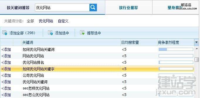 推廣助手本來是幫競價(jià)用戶來推薦關(guān)鍵詞的,只要你輸入一個(gè)關(guān)鍵詞,馬上就會(huì)出來很多以這個(gè)關(guān)鍵詞為核心詞的關(guān)鍵詞,其中就有大量的長尾關(guān)鍵詞,而且都沒還帶有流量搜索數(shù)據(jù)以及競爭激烈程度圖,這個(gè)更有利于我們得到精確的數(shù)據(jù),可以選擇一些大流量的長尾詞而競爭小的來做。