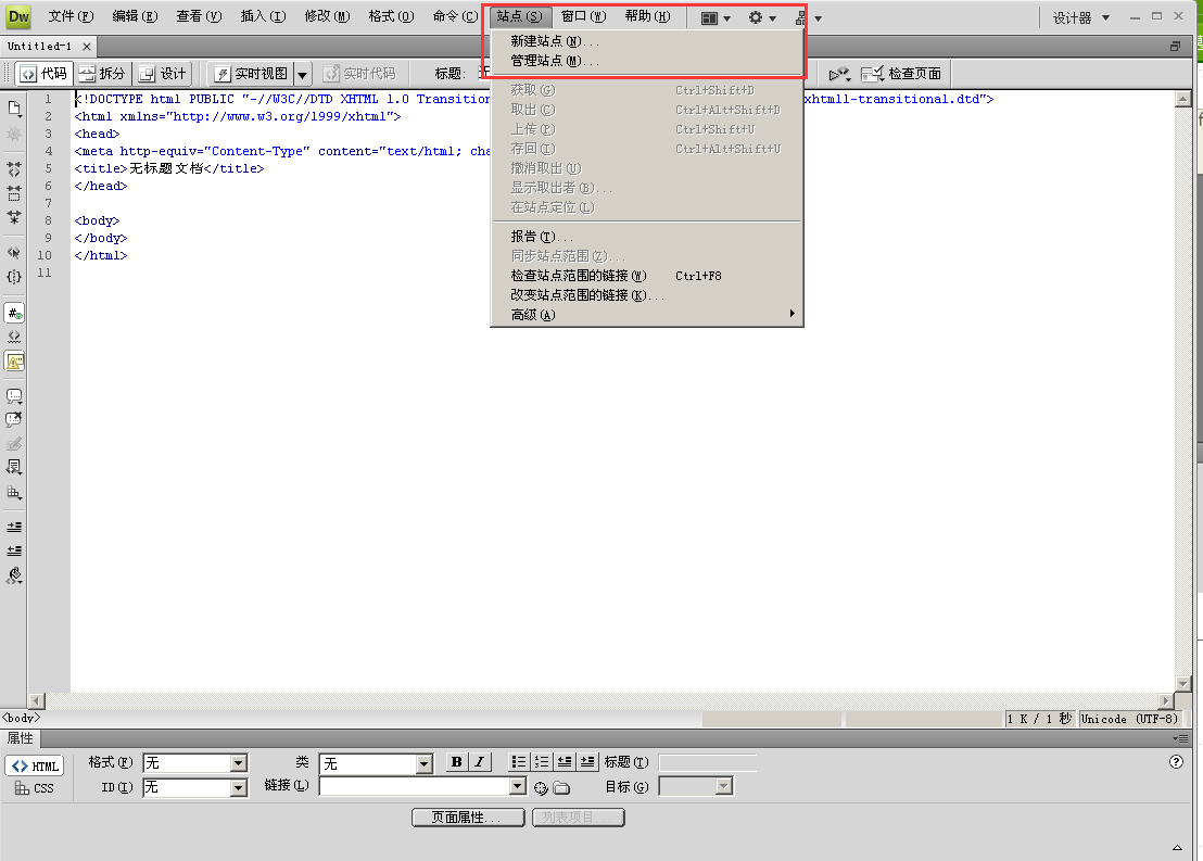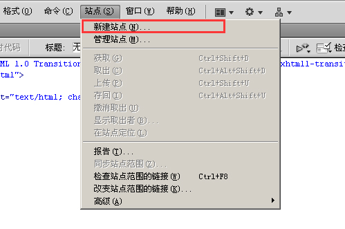 站點(diǎn)”一欄,點(diǎn)擊之后,下拉菜單出現(xiàn)“