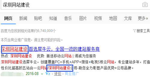 再例如,IP定位為深圳的用戶搜索“網(wǎng)站建設(shè)”,創(chuàng)意標(biāo)題和描述中含有地名詞“深圳”,故創(chuàng)意中“深圳網(wǎng)站建設(shè)”會(huì)被飄紅。