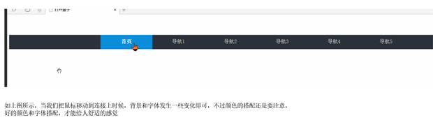 <!DOCTYPE html> <html> <head> <title>導(dǎo)航欄的做法之一</title> <style> /*這是導(dǎo)航條****************************************************************************/ /*容器是用來裝那個存放了a標(biāo)簽的div*/ .rongqi{ background:#2C323B; height:55px; width:100%; margin:80px 0px; } /*導(dǎo)航條里面各個a標(biāo)簽的總寬度,當(dāng)前是六個a的寬度,每個a寬度默認(rèn)是200px*/ #top{ //border:solid #fff 1px; margin:0px auto; width:1200px; height:55px; } /*hanghang是a標(biāo)簽的class*/ .hanghang{ font-size:20px; color:#DDDDDD; text-align:center; line-height:50px; float:left; width:200px; height:55px; margin-left:0px; list-style-type:none; background:#2C323B; text-decoration:none; } .hanghang:hover{ list-style-type:none; color:#ffffff; font-weight:800; background:#0C8ED9; } /*****************************************************************************這是導(dǎo)航條/ </style> </head> <body> <!--這是導(dǎo)航條***************************************************************************--> <div class="rongqi"> <div id="top"> <a class="hanghang" href="#">首頁</a> <a class="hanghang" href="#">導(dǎo)航1</a> <a class="hanghang" href="#">導(dǎo)航2</a> <a class="hanghang" href="#">導(dǎo)航3</a> <a class="hanghang" href="#">導(dǎo)航4</a> <a class="hanghang" href="#">導(dǎo)航5</a> </div> </div> <!--***************************************************************************這是導(dǎo)航條--> </body> </html>