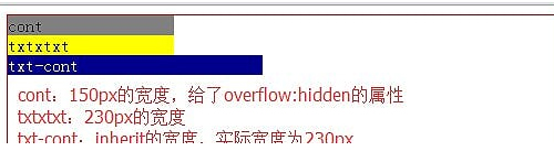 .wrap{ position: relative; width: 500px; height: 300px; border: 1px solid red; } .cont{ background: gray; width: 150px; overflow: hidden; } .txt{ background: yellow; width: 50%; height: inherit; } .banner{ background: pink; width: 50%; height: inherit; } .txt-cont{ position: absolute; background: darkblue; width: inherit; color: white; }