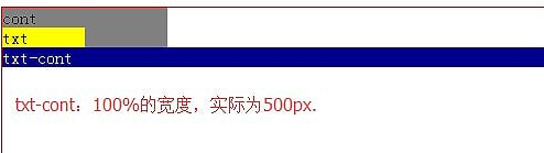 .wrap{ position: relative; width: 500px; height: 300px; border: 1px solid red; } .cont{ background: gray; width: 150px; overflow: hidden; } .txt{ background: yellow; width: 50%; height: inherit; } .banner{ background: pink; width: 50%; height: inherit; } .txt-cont{ position: absolute; background: darkblue; width: 100%; color: white; }