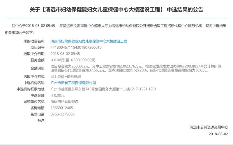 最終,廣州市新譽工程咨詢有限公司以 0 元服務費 中標。